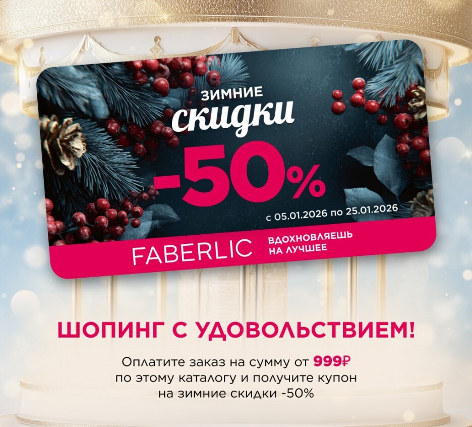 Оплатите заказ по каталогам №18/2025, №19/2025 и за каждые 999 руб. получите купон на скидку -50%* в каталоге №01/2026.